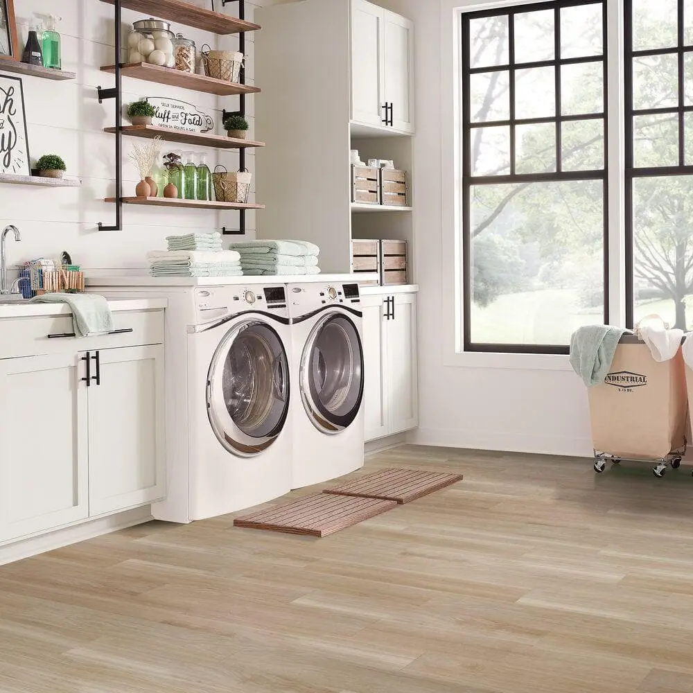 Enhance your space with TrafficMaster Natural White Oak Peel and Stick Vinyl Tile Flooring, designed for both convenience and style. This water-resistant flooring is perfect for high-moisture areas like kitchens and bathrooms. With its peel and stick installation, it’s incredibly easy to install without the need for glue. The durable 3 MIL wear layer ensures resistance to everyday wear and tear, while the realistic natural white oak design adds a sleek wood-look finish to any room. Low maintenance and easy to clean, this flooring is both practical and stylish. Each tile measures 6 in. W x 36 in. L, and each case covers 36 sq. ft., offering an efficient solution for your flooring needs