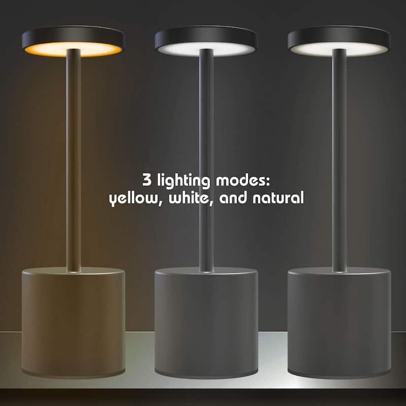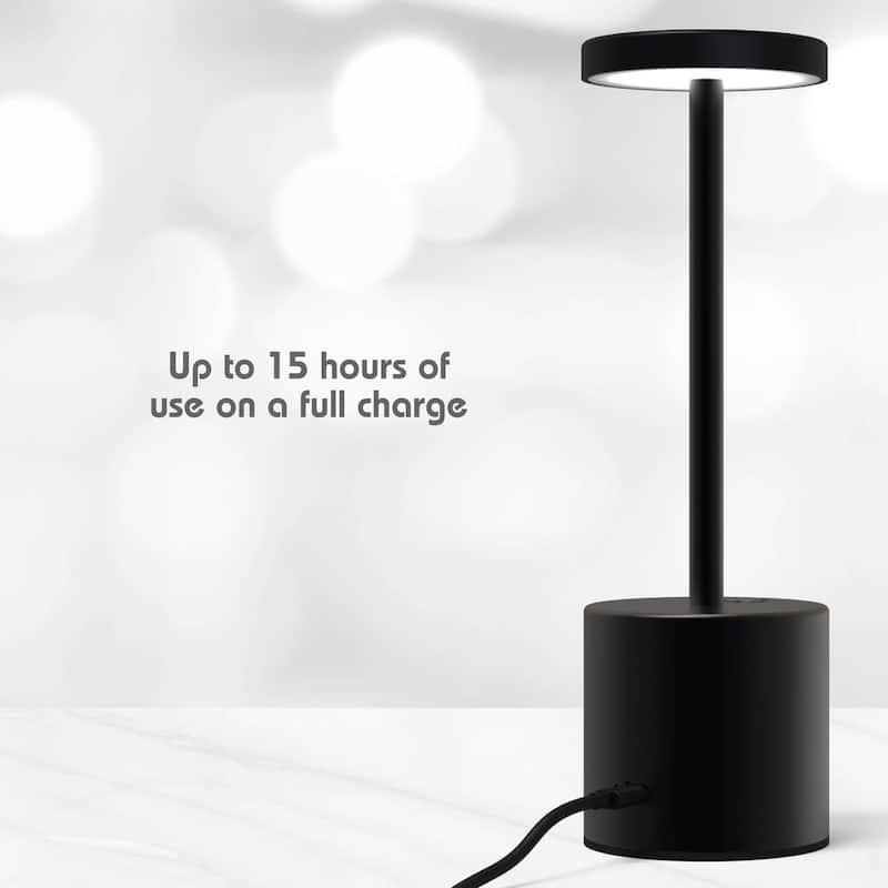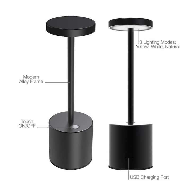 Set the ideal atmosphere in any setting with the auraLED Wireless Brilliance LED Table Lamp. This dimmable desk lamp, designed with a sleek alloy finish and minimalist style, is perfect for home, office, restaurants, and more. It offers three color modes and adjustable brightness levels, all easily controlled with intuitive touch functions. The energy-efficient LED light is both eco-friendly and stylish. With its USB rechargeability and compact size, the auraLED Wireless Brilliance LED Table Lamp is a versatile and essential addition to any space.