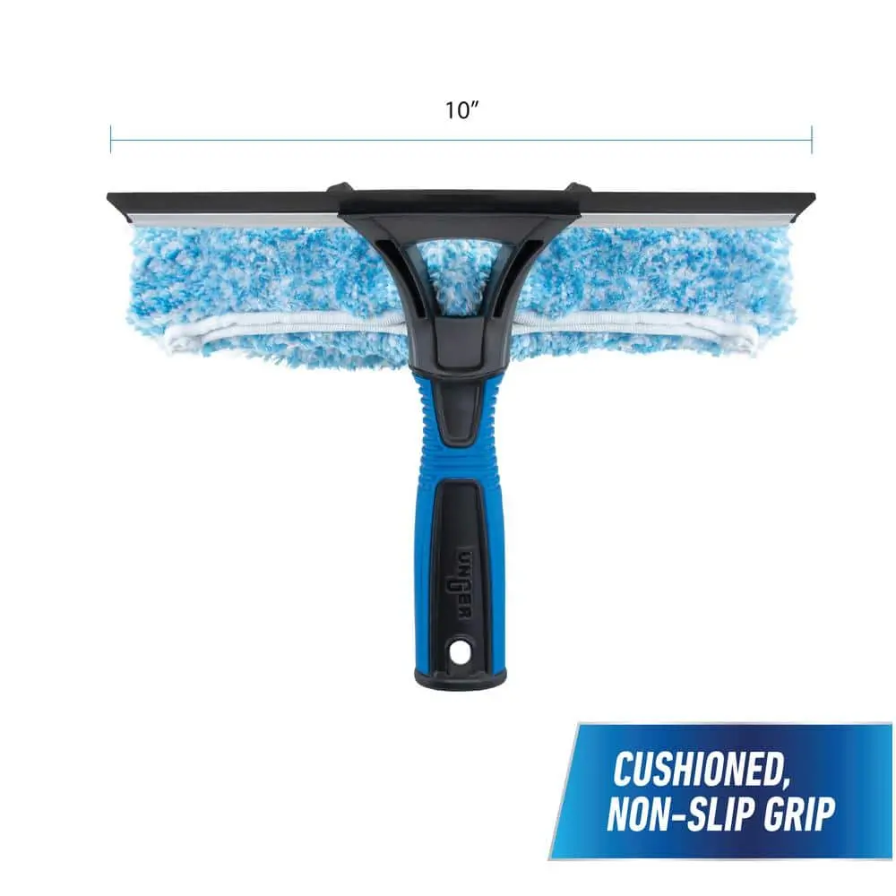 The 10 in. 2-in-1 Window Cleaner combines a scrubber and squeegee, offering a quick, easy, and effective solution for cleaning outdoor windows without the need to switch tools. Featuring a professional-quality rubber blade, absorbent microfiber sleeve, and a cushioned grip, this tool is perfect for achieving streak-free results. It can also be attached to a pole for cleaning high-access windows.