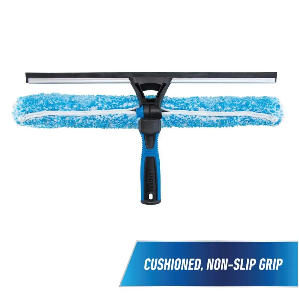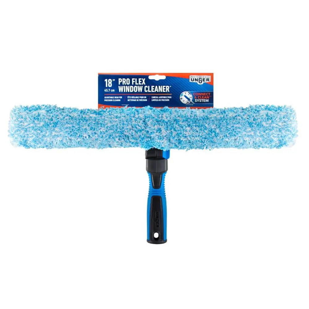 Unger’s 18 in. ProFlex Window Cleaner is designed for high-access outdoor window cleaning, combining both a scrubber and squeegee in one tool. Its adjustable head allows for easy cleaning from any angle, while the professional-grade rubber blade, absorbent microfiber sleeve, and cushioned grip make it efficient and comfortable to use. This 2-in-1 tool offers a quick, effective solution for window cleaning without needing to switch between tools.