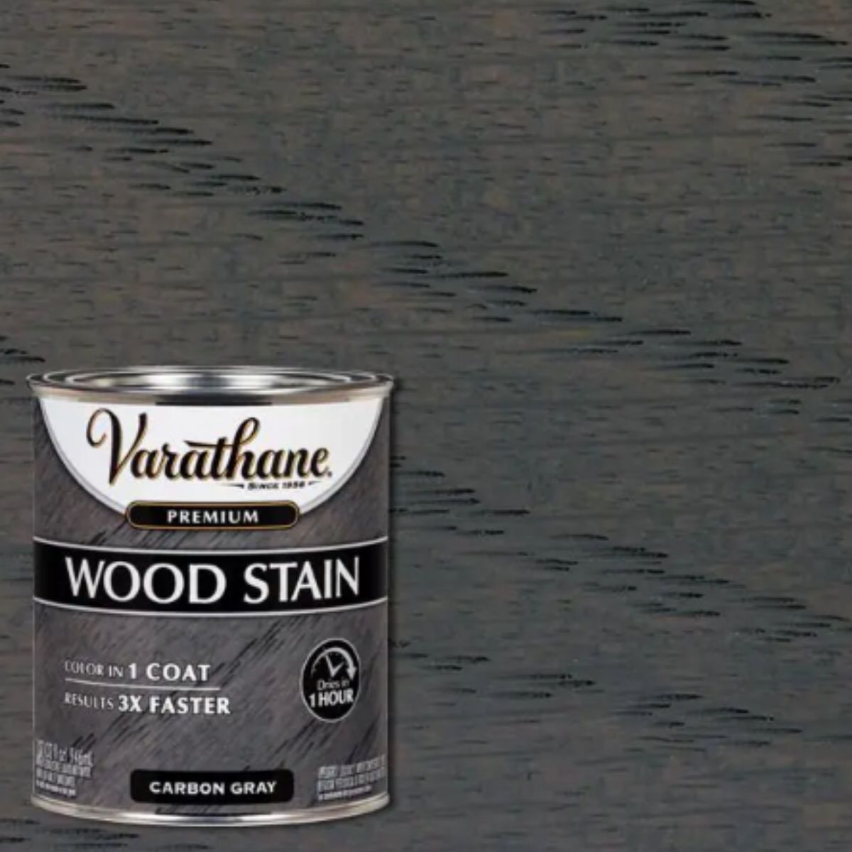 Varathane 1 qt. Carbon Gray Premium Fast Dry Interior Wood Stain is formulated to deliver high-quality color in just one coat, enriching the natural beauty of interior wood surfaces like furniture, cabinets, doors, trim, floors, and paneling. Its fast-drying formula ensures completion of projects in as little as 1 hour, utilizing nano pigments for superior color clarity and coverage. This stain is designed for efficiency, saving time and energy with easy application using a synthetic brush or lint-free rag without the need for pre-stain or wood conditioner. It seals wood pores effectively, enhancing grain visibility, and is available in a variety of trendy and classic colors to suit any project. Cleanup is straightforward with mineral spirits, and for enduring protection, it's recommended to top coat with Varathane polyurethane.