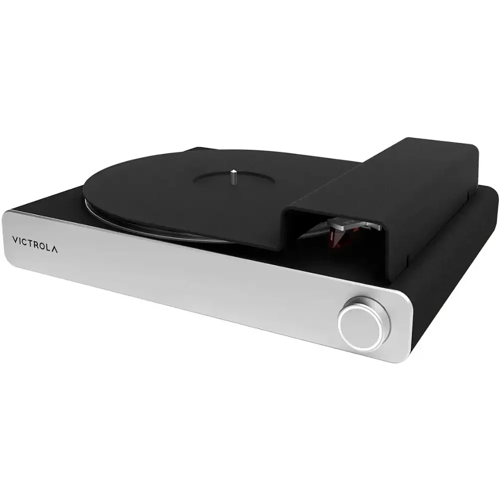 The Victrola Stream Carbon Turntable offers premium audio performance with its carbon fiber tonearm, delivering crisp and clear sound. Seamlessly integrate it with your home audio setup as it works with Sonos speakers, allowing for multi-room audio control. The turntable features a stylish black and silver finish, making it a sleek addition to any decor. Enjoy versatile connectivity with both Bluetooth and wired options, while the durable construction ensures long-lasting use and precision engineering