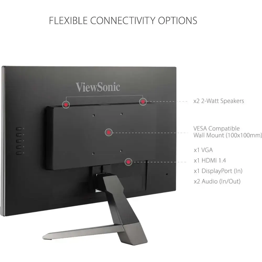 The ViewSonic VX2467-MHD is a 24-inch (23.8-inch viewable) Full HD monitor designed for both gaming and entertainment, offering excellent performance at an affordable price. With AMD FreeSync technology, this monitor delivers a variable refresh rate that effectively eliminates screen tearing and stuttering, ensuring smooth gameplay during intense, fast-paced action. Its ultra-fast 1ms response time (MPRT) minimizes blurring and ghosting for crisp, clear visuals. For an edge in competitive gaming, the Game Mode hot key optimizes settings for FPS, RTS, and MOBA games. Additionally, the black stabilization function enhances visibility in dark scenes, while maintaining vibrant colors and contrast for a fully immersive experience. Flexible connectivity options like DisplayPort, HDMI, and VGA make it easy to connect to your graphics card or gaming console, making the VX2467-MHD the perfect choice for gaming and entertainment enthusiasts.