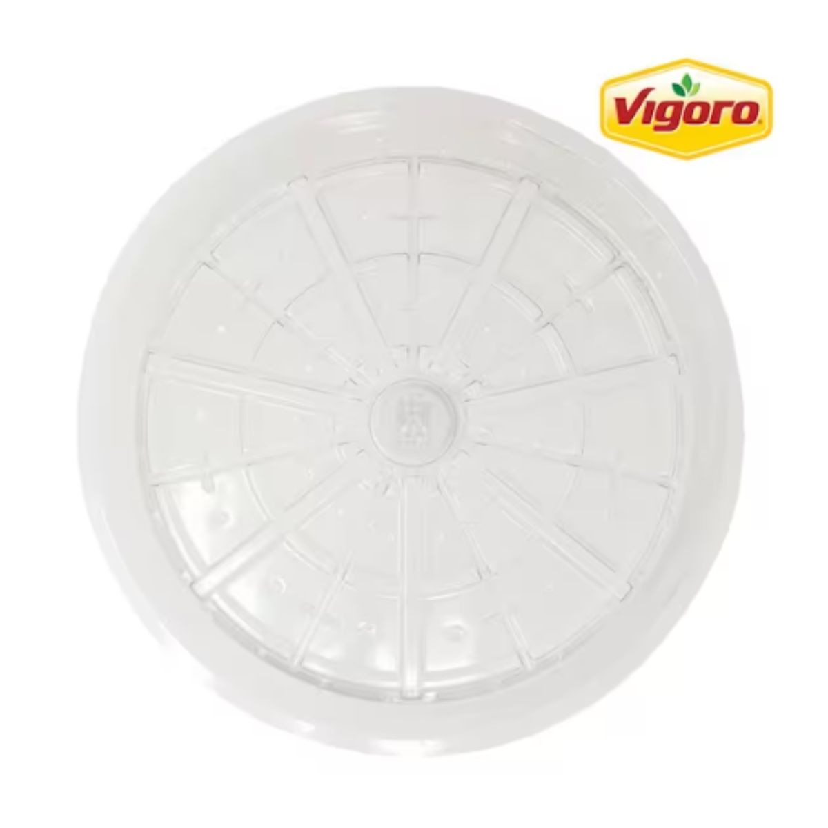 Elevate your gardening experience! Vigoro's 10 in. Medium Duty Clear Plastic Plant Saucer keeps your indoor and outdoor plants dry and clean. Its innovative design channels water away, protecting surfaces like tables and countertops. With an airflow bottom, moisture and dirt won't accumulate. A must-have for every gardener!