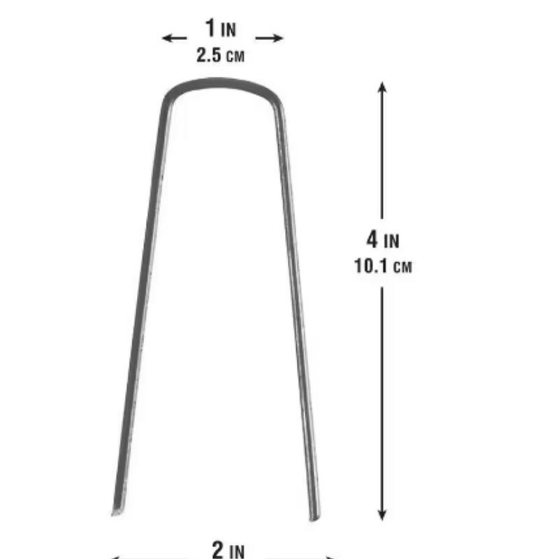 The Vigoro 3.5 in. Weed Barrier Landscape Fabric Garden Staples (75-Pack) are essential for securing landscape fabric in place. Each staple is 3.5 inches long, made from durable steel, and designed to hold fabric firmly on the soil to prevent movement and maintain effective weed control. The pack includes 75 staples, ensuring you have ample coverage for larger areas or multiple projects. Ideal for use with landscape fabrics and other ground cover materials, these staples provide reliable support and stability, making garden maintenance easier and more efficient. Dimensions Product Length (ft.):0 ft Product Thickness (mm):1 Product Width (ft.):0.33 ft Duty Type:Heavy Duty Landscape Supply Type:Fabric Stake Pack Size:75
