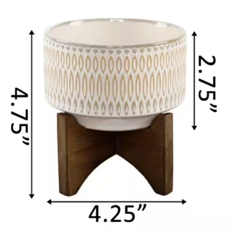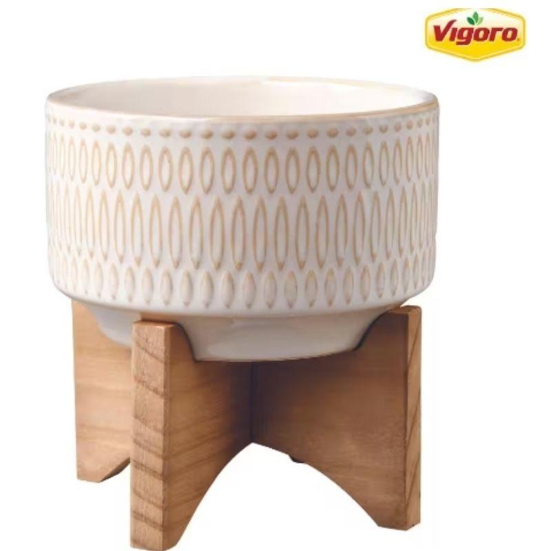 The Vigoro 4.3-inch Gianna Small Ivory White Ceramic Pot features a sleek, minimalist design with a smooth ivory white finish. Measuring 4.3 inches in diameter and 4.75 inches in height, it’s perfect for small plants or succulents. The pot comes with a matching stand, elevating it to add an elegant touch to any space. Ideal for indoor use, this stylish pot enhances decor while providing a stable base for your plants.