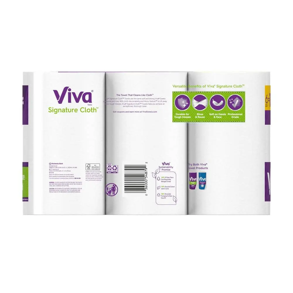 Viva Signature Cloth Paper Towels are the softest and most durable option, designed to tackle even your toughest cleaning tasks. This 6-roll pack contains 141 sheets per roll, offering plenty of towel power for various jobs. Twice as durable as regular towels, Viva paper towels are perfect for rinsing and reusing, whether you’re doing a weekly bathroom deep clean or scrubbing away stubborn messes on pots and pans. Their cloth-like texture makes them tough enough for any cleaning challenge, helping you achieve a thorough clean around your home. Tested against leading value brands, Viva towels outperform when wet.