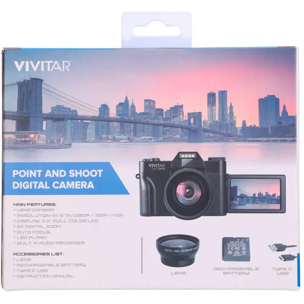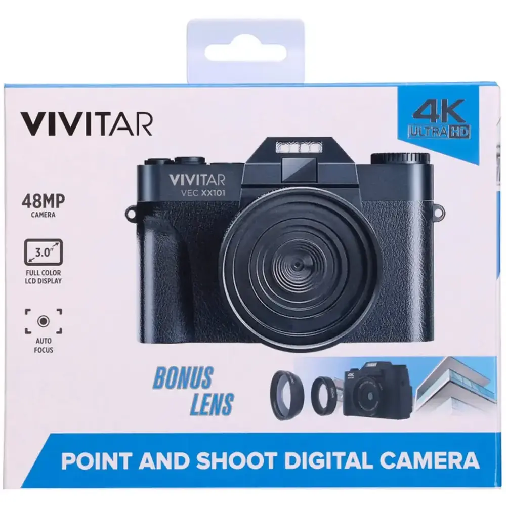 Capture stunning moments effortlessly with the Vivitar 4K Point and Shoot Digital Camera. Featuring a 48MP sensor, 4K video recording, and an 8X digital zoom, this compact camera delivers high-resolution images and videos with vibrant detail. Whether you're shooting breathtaking landscapes or capturing everyday moments, this camera ensures clarity, flexibility, and convenience.