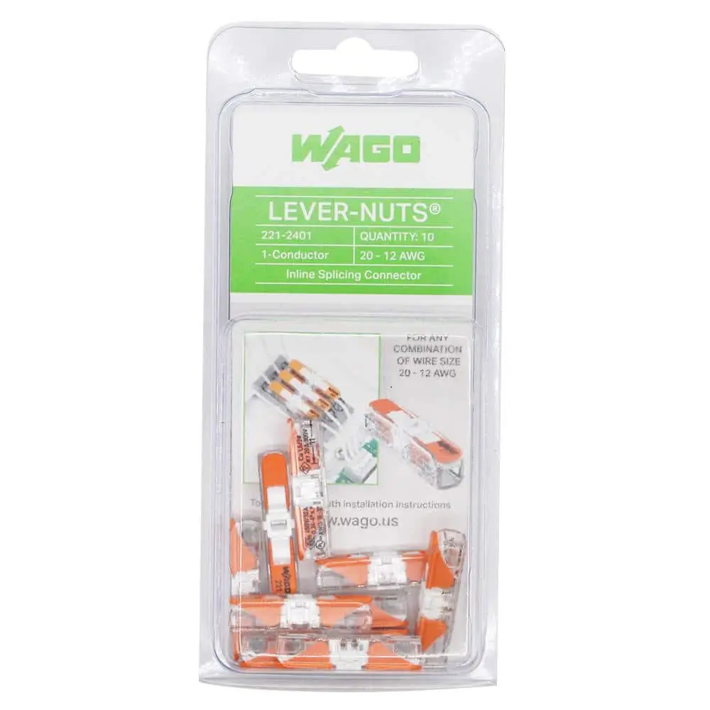WAGO's 221 Series wire splicing connectors offer a tool-free, lever-actuated design for quick, easy, and safe connections. They are ideal for connecting solid, stranded, and fine-stranded conductors across various cross-sections with 2-wire, 3-wire, and 5-wire connectors. Available in two variants, these connectors accommodate wire sizes from 24-12 AWG and 20-10 AWG. The levers are easy to open with minimal effort, allowing for fast connections. Recessed handles ensure a secure grip during use, and the connectors allow voltage testing from either side, even when installed. Mounting carriers are available for vertical or horizontal mounting and can be secured via DIN-rail or screws. Flexible mounting clamps simplify the insertion and removal of connectors.