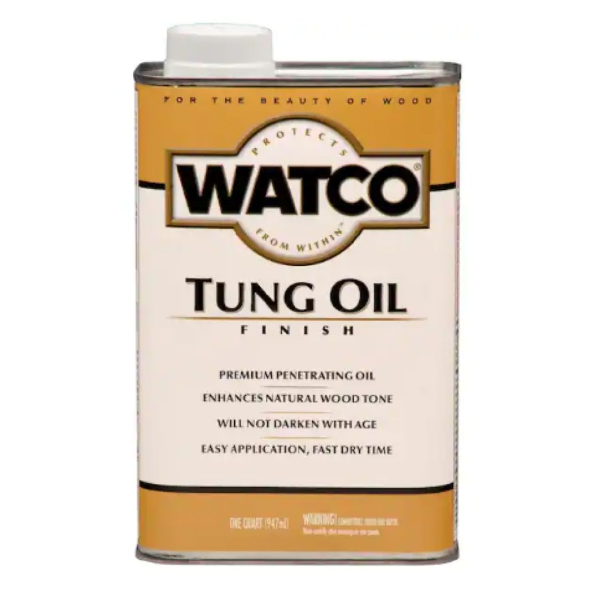 Watco 1 qt. Tung Oil Finish enhances the natural color and warmth of interior wood surfaces with a fast-drying formula that provides excellent moisture protection. Ideal for both stained and unfinished wood, it creates a genuine hand-rubbed finish that won't darken over time. This finish covers up to 200 sq. ft. depending on wood type and porosity, offering a glossy appearance that can be reapplied to maintain or enhance wood luster. It dries to the touch in just 30 minutes, though a minimum of 24 hours is recommended before use. The oil penetrates deeply into the wood grain, highlighting its natural beauty with easy application. Cleanup is simple with mineral spirits, and the online price includes a PaintCare fee for specified states.