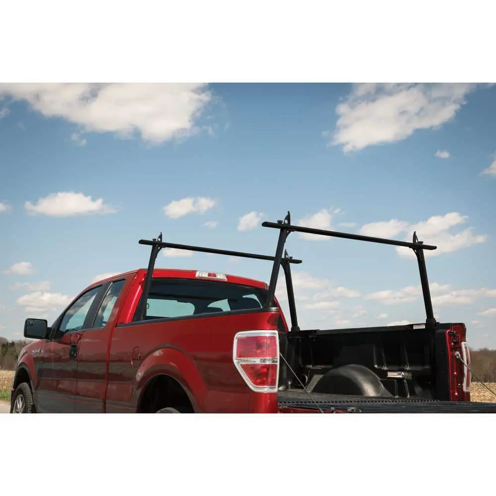 The Weather Guard Defender Series black truck ladder rack is designed to fit most full-size and compact trucks, providing an efficient solution for hauling ladders, lumber, pipes, and other large supplies. Its no-drill, clamp-on installation makes setup fast and simple, mounting securely on the truck bed. The rack includes four adjustable ladder stops that easily slide into the cross members. With an impressive 800 lbs. weight capacity, it significantly boosts the storage and transport capabilities of your truck.