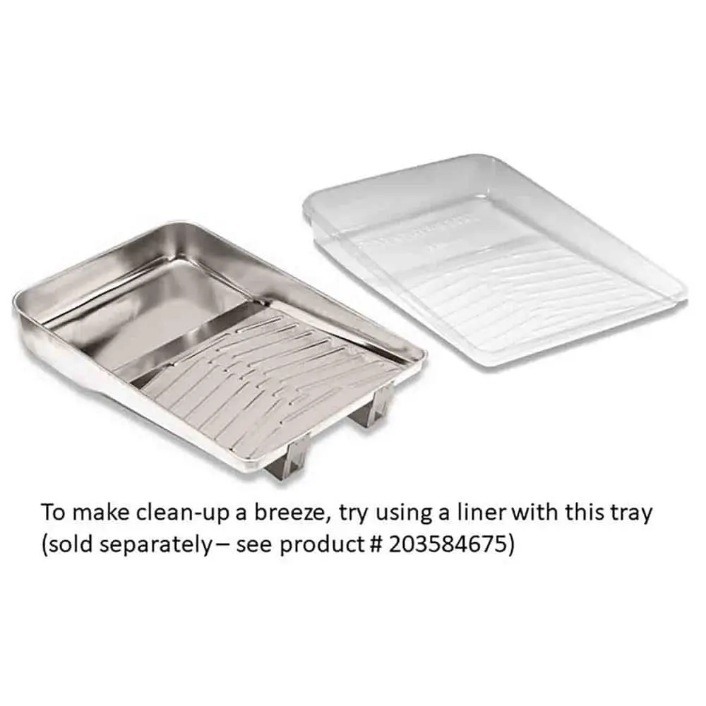 The Wooster 11 in. Metal Deluxe Roller Tray is built for durability and efficiency, featuring an 11-inch size that fits standard paint rollers for smooth application. Made from durable metal construction, it is sturdy and long-lasting for repeated use. Its deep-well design holds more paint, minimizing the need for frequent refills. The ribbed roll-off area ensures even paint loading on rollers, improving coverage and reducing drips. Additionally, it is solvent-resistant, making it compatible with various paints and easy to clean after each project