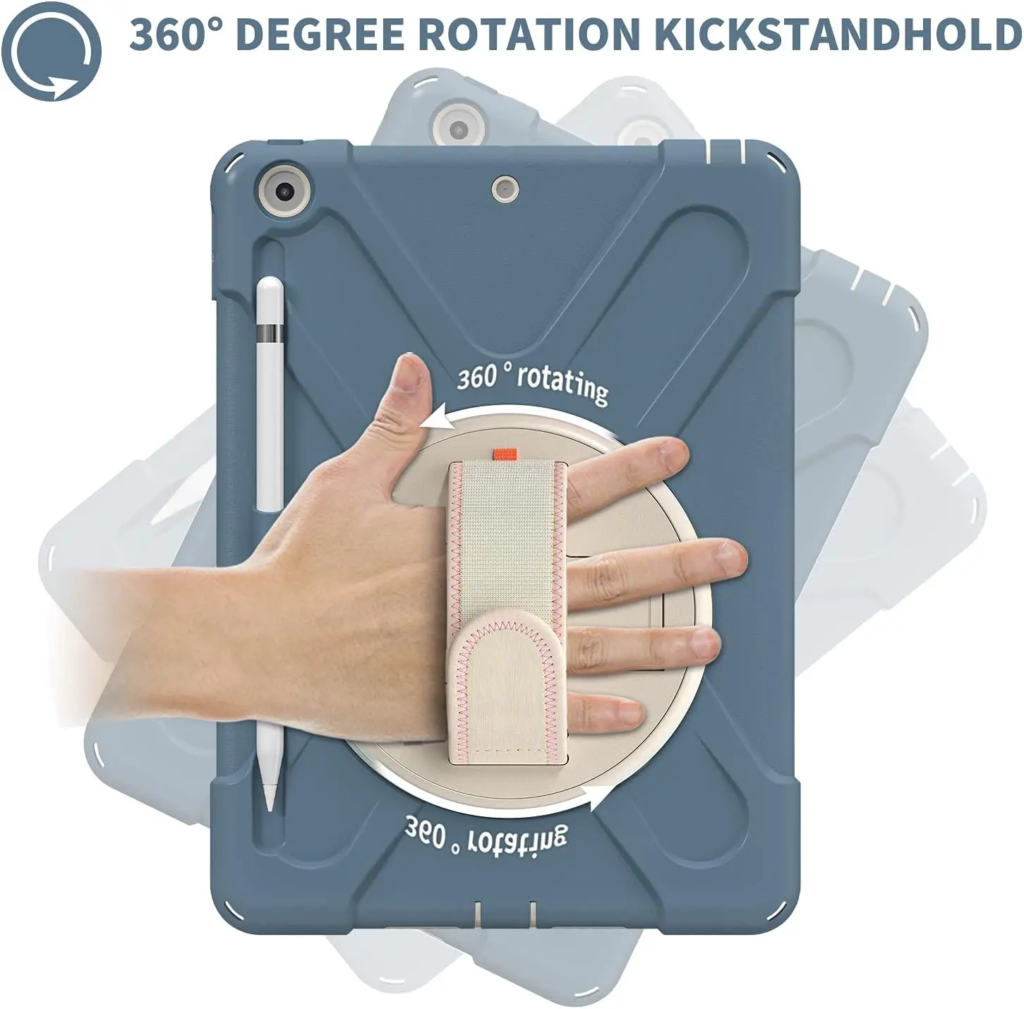 ZenRich Rugged Shockproof Case for iPad 9th/8th/7th Generation 10.2 inch (2021), with Pencil Holder, Rotating Hand Strap, Stand, Shoulder Strap, and Screen Protector (A-Cornfolwer Blue)