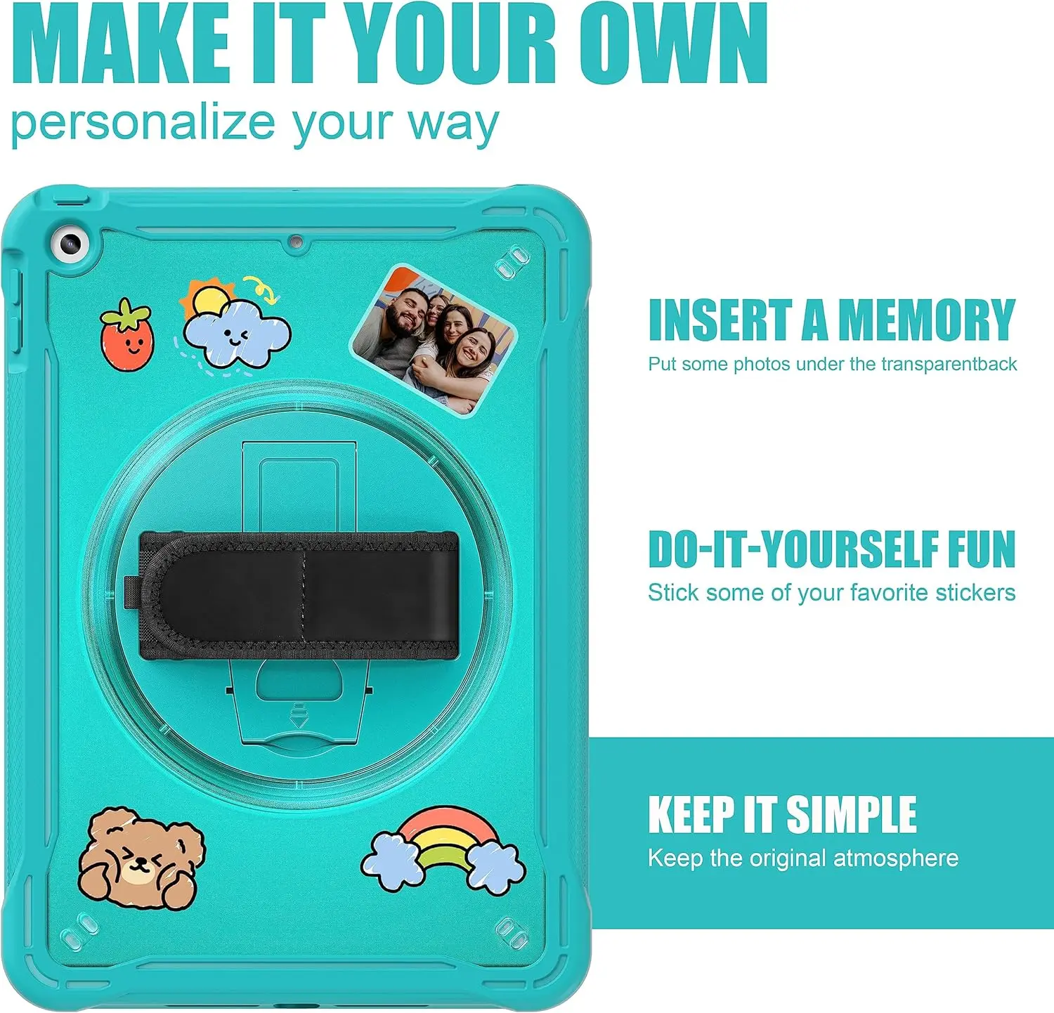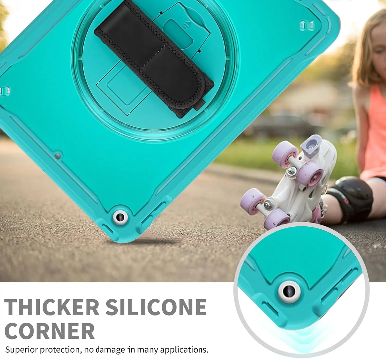The ZenRich Rugged Shockproof Case offers robust protection and convenience for your iPad 9th, 8th, or 7th Generation (10.2-inch models). Built for durability and functionality, this case features a 360-degree rotating kickstand, a built-in pencil holder, an adjustable hand strap, and a detachable shoulder strap for easy carrying. The 3-layer design with a silicone outer frame and reinforced inner shell ensures maximum protection, making it ideal for kids and adults alike.