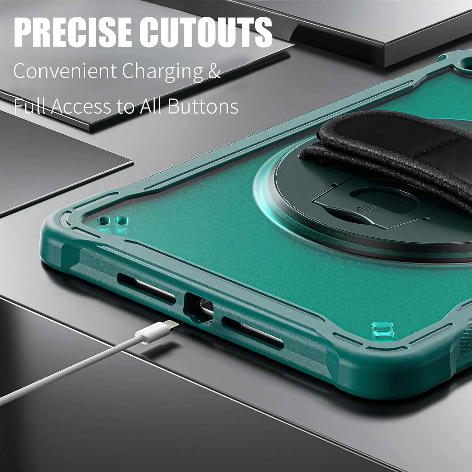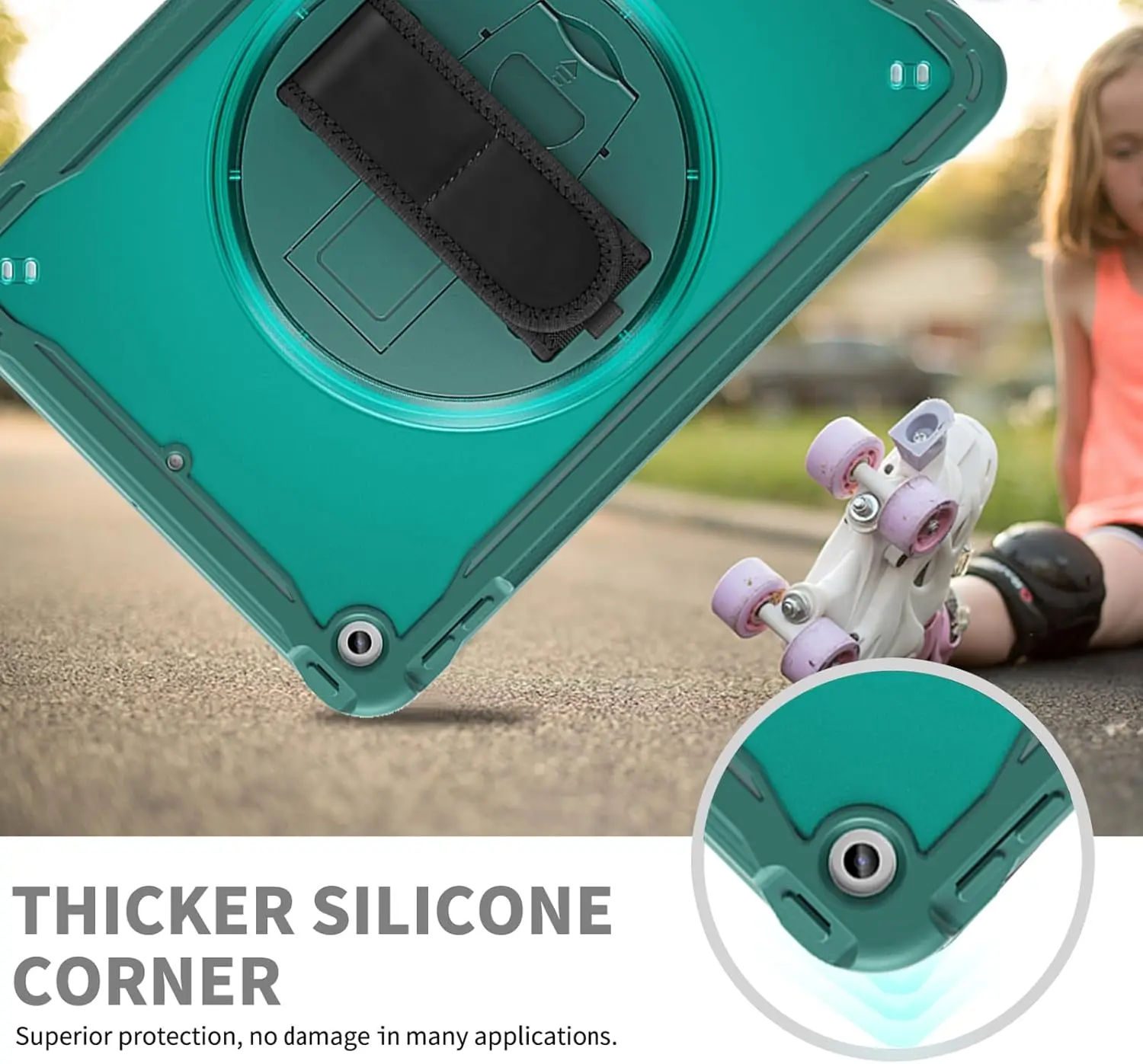 The ZenRich Rugged Shockproof Case offers robust protection and convenience for your iPad 9th, 8th, or 7th Generation (10.2-inch models). Built for durability and functionality, this case features a 360-degree rotating kickstand, a built-in pencil holder, an adjustable hand strap, and a detachable shoulder strap for easy carrying. The 3-layer design with a silicone outer frame and reinforced inner shell ensures maximum protection, making it ideal for kids and adults alike.