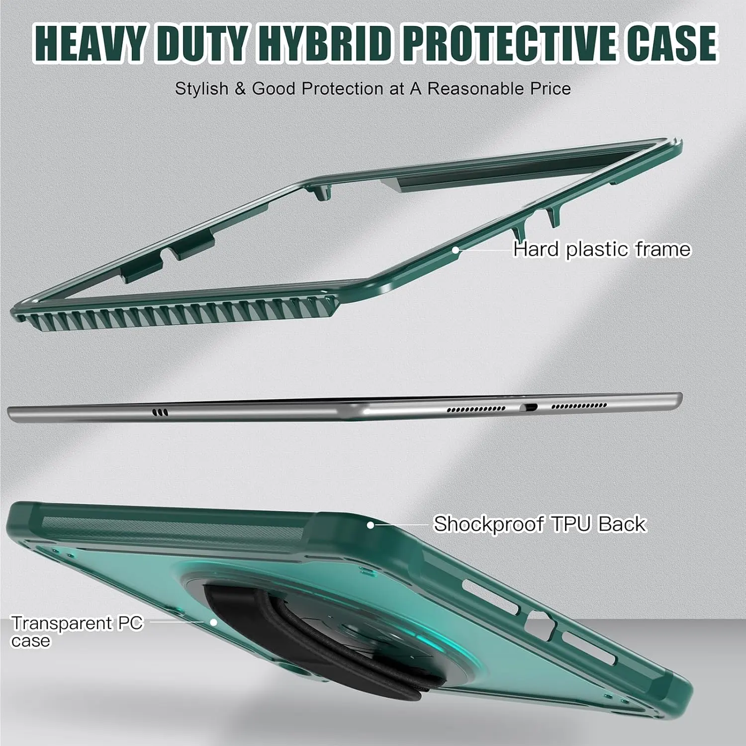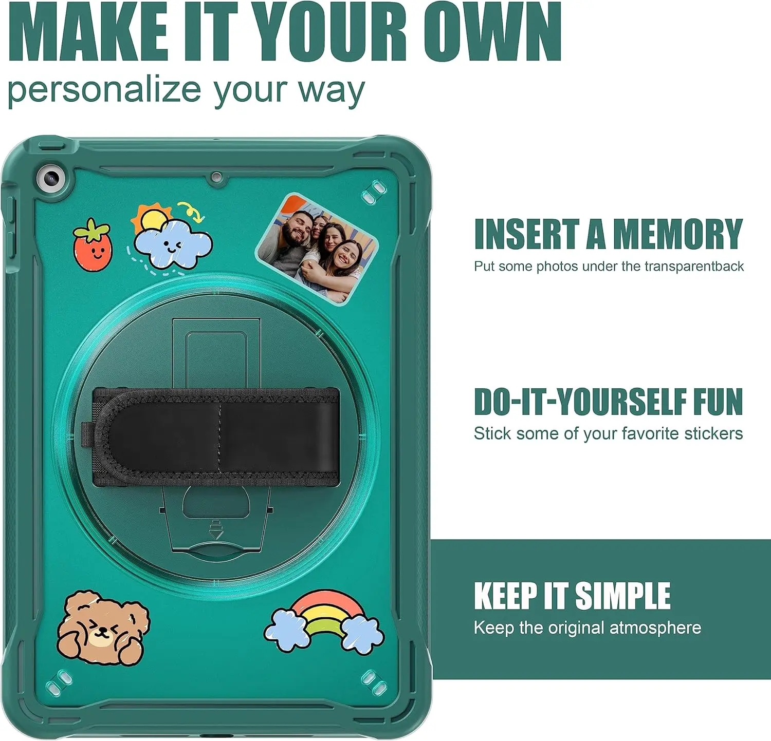 ZenRich Rugged Shockproof Case for iPad 9th/8th/7th Generation 10.2 inch (2021), with Pencil Holder, Rotating Hand Strap, Stand, Shoulder Strap, and Screen Protector (B-Midnight Green)
