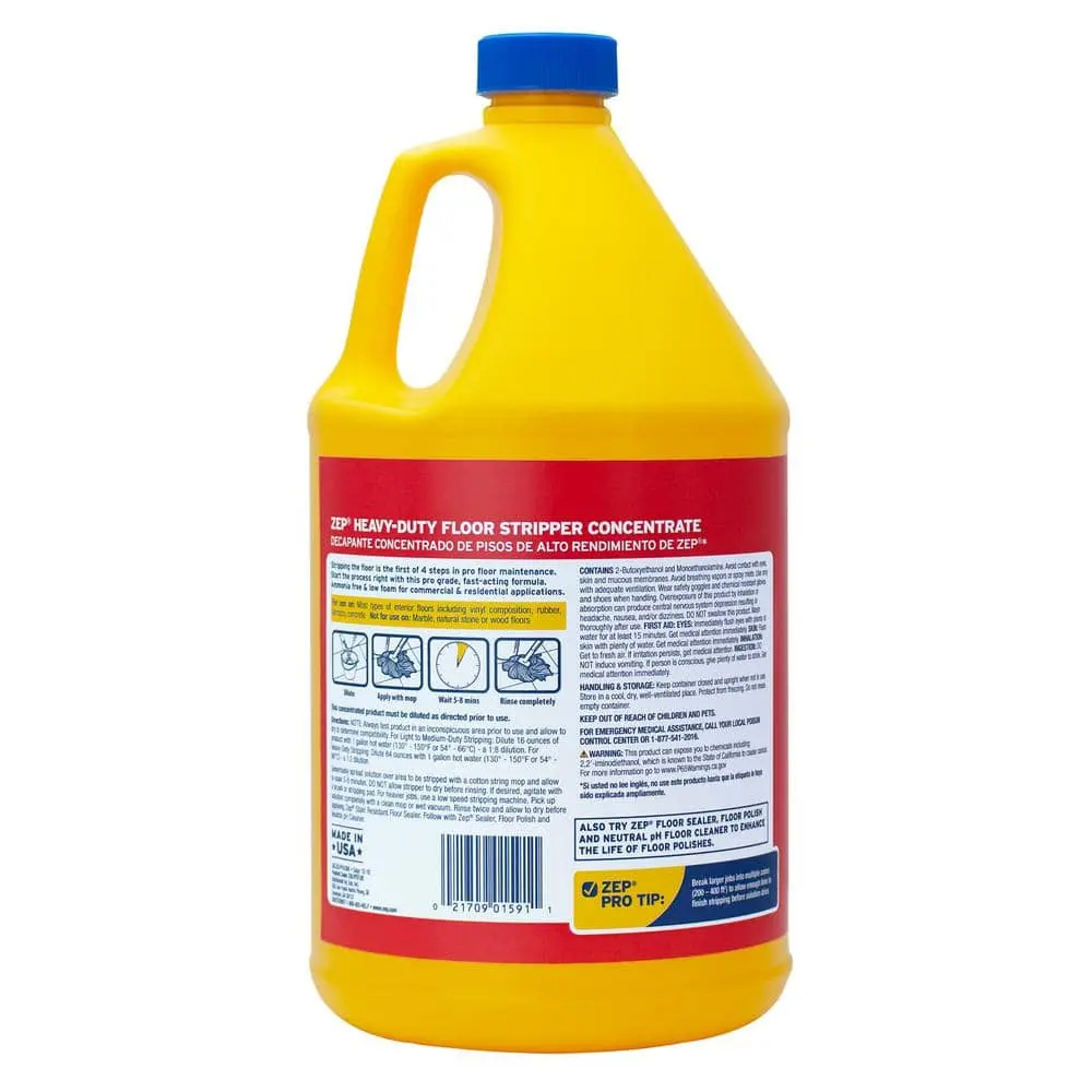 ZEP Heavy-Duty Floor Stripper is the first step in the 4-Step Professional Floor Maintenance System. It works effectively as a floor wax remover and removes acrylic finishes from floors to prepare them for waxing. The concentrated, high-alkaline, low-foam formula can be applied using a mop or scrubbing machine. This fast-acting, ammonia-free product delivers powerful results.