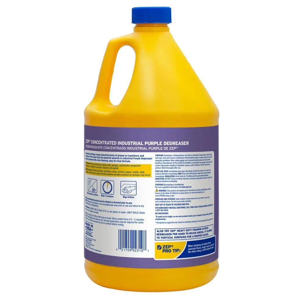 ZEP Industrial Purple Cleaner and Degreaser Concentrate is a powerful, heavy-duty cleaner designed to tackle tough grease and oil stains. It quickly removes stubborn dirt from engines, heavy machinery, tools, and unfinished concrete. This professional-grade degreaser is highly effective at breaking down even the most extreme dirt build-up.