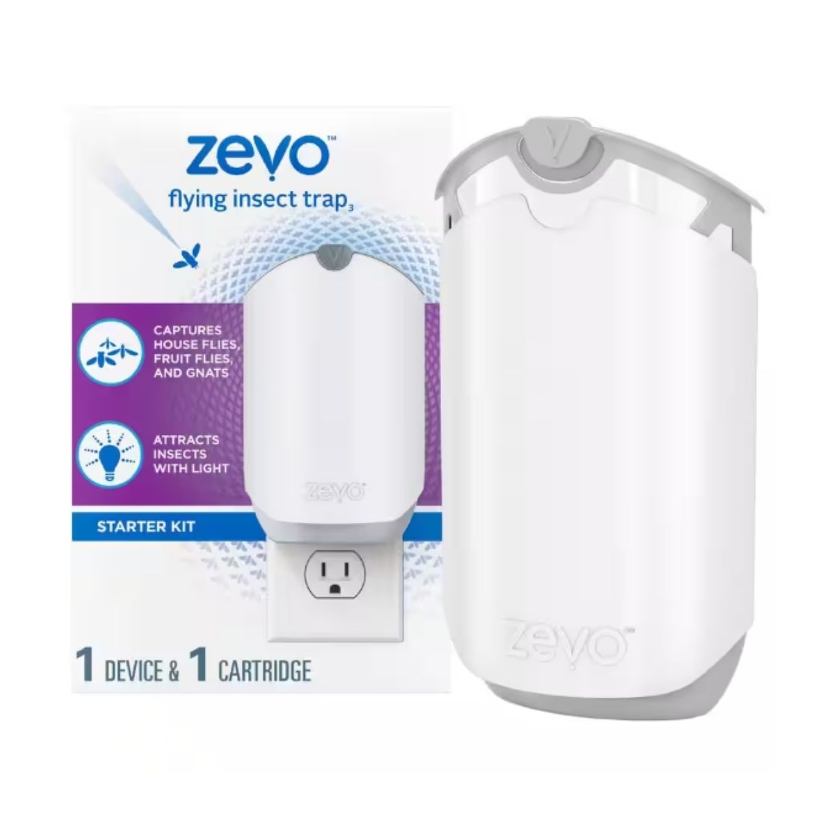 The Zevo Indoor fly trap utilizes specially engineered blue and UV LEDs to entice flying insects (including houseflies, fruit flies, and gnats*). These insects are then captured onto an adhesive backing, eliminating the need for direct contact. This fly trap can be used in various areas of your home, including kitchens, bathrooms, garages, living spaces, or near potential food sources like fruit bowls, trash cans, doors, and house plants. Its continuous 24/7 attraction ensures effective insect control.