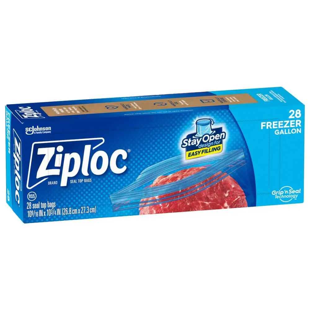 The Ziploc 1 gal. Plastic Freezer Bags (28-Pack) are perfect for storing large portions of food, offering a 1-gallon size that’s ideal for freezing, storing, and organizing meals. With 28 bags per pack, you’ll have plenty of storage space for your needs. These bags are freezer-safe, ensuring your food stays fresh for long-term storage. The secure, easy-to-close seal keeps food airtight, while the durable, heavy-duty plastic prevents leaks and punctures. These versatile bags are great for both meal prep and everyday household use
